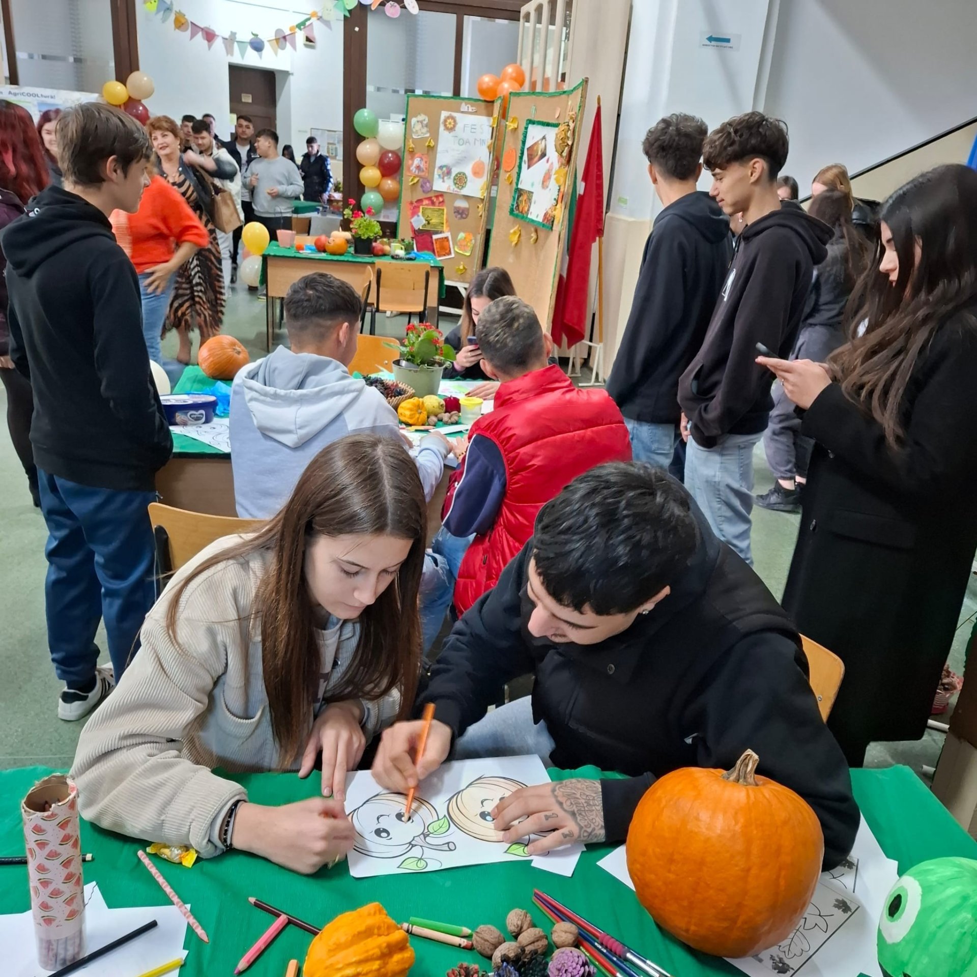 Evenimentul a oferit elevilor prezenți o gamă variată de activități, de la ateliere de sculptură în dovleci până la preparate culinare specifice sezonului: